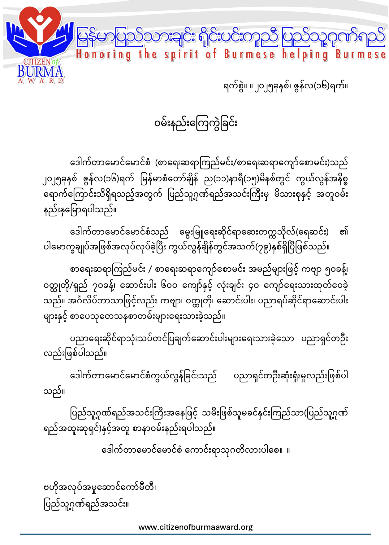 အထူးဝမ်းနည်းကြေကွဲခြင်း ‌‌ဒေါက်တာမောင်မောင်စံ