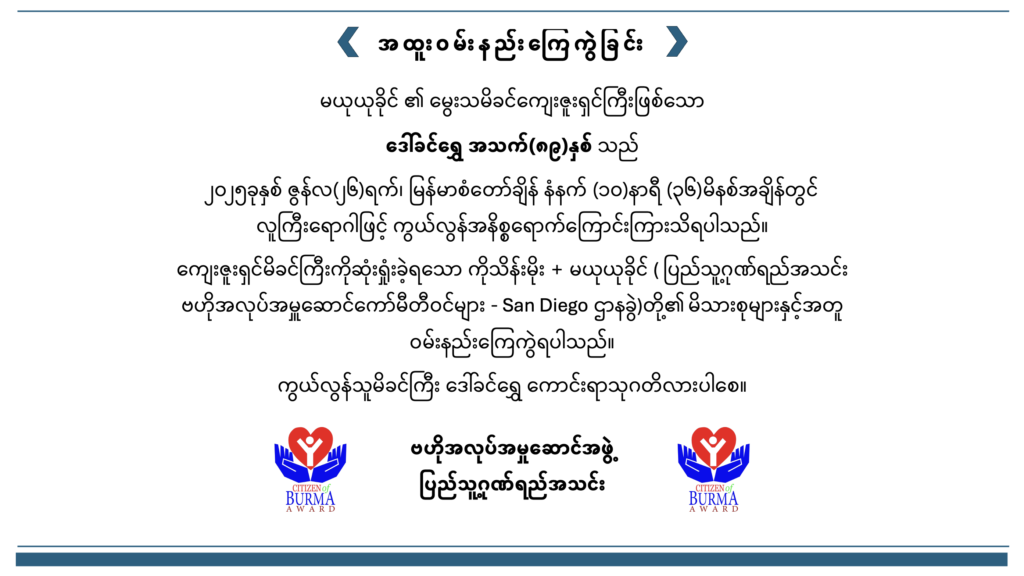 အထူးဝမ်းနည်းကြေကွဲခြင်း ‌‌ဒေါ်ခင်‌ရွှေ