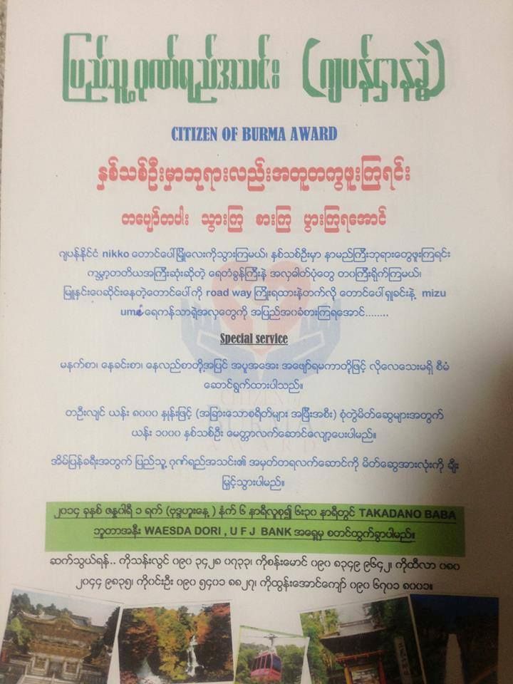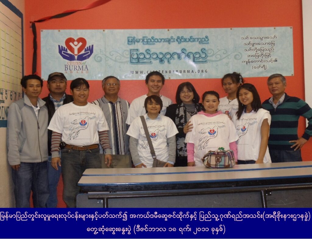 COBA is a nonprofit organization founded in 2010 to recognize, appreciate, and honor volunteer Burmese individuals and organizations who contribute their knowledge, labor, skills, and resources toward social services and charities for the Burmese community inside Burma